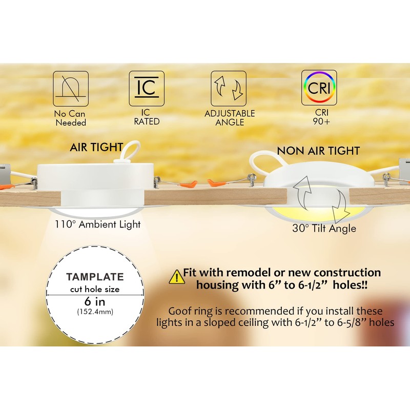 - 【8 Scenarios & Music Sync】 The RGB LED recessed light has more than 16 million colors, smooth 1%-100% dimming(Only support for APP control and Voice control), 2700K-6500K color temperature etc. Scenarios are editable, which means it will meet your different lighting needs-- reading, working, movie time dancing or let snyc to music. Lighting color will change with the music beats or your microphone or hands claps