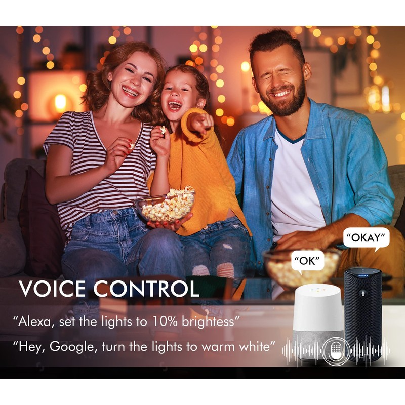 - 【Voice Control】 Compatible with Alexa and Hey,Google. Use simple conversations to control your lights and release your hands like“Alexa, turn the light to day light” The answer is “OK” and followed by lighting change
