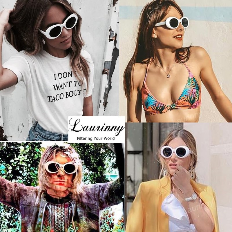 Clout Goggles Oval Bold Retro Mod Kurt Cobain Sunglasses Clout Round Lens (3 Pack White Blue Checkered)