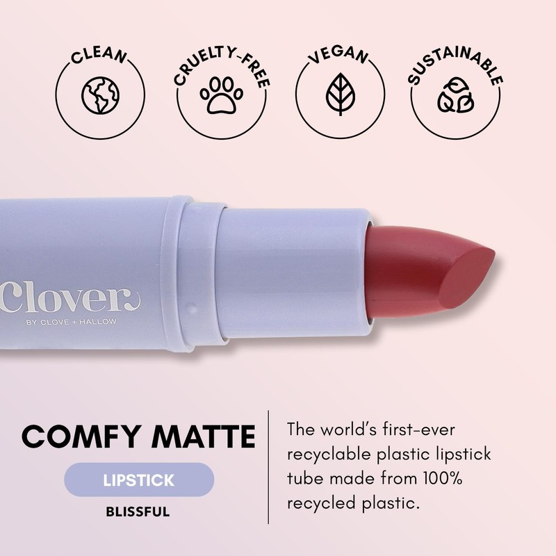 Clover Comfy Matte Lipstick | Non Drying Lipstick, Moisturizing And Lightweight, High Pigmented Lipstick | Cruelty-Free & Vegan Lip Makeup | Shade - Blissful