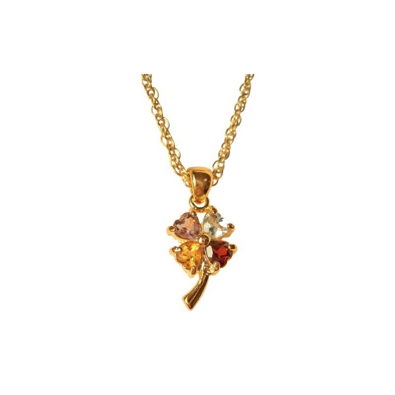 Clover Pendant Necklace for Good Luck with Amethyst, Citrine, Garnet and Topaz