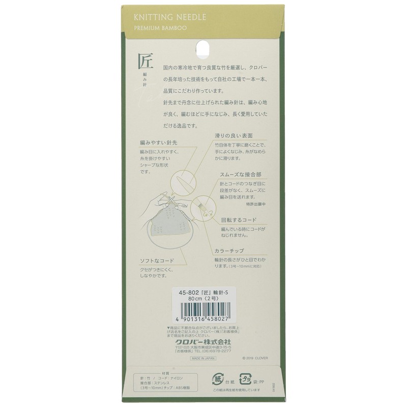 Clover Takumi Circular Knitting Needles - S, 31.5 inches (80 cm), No. 2