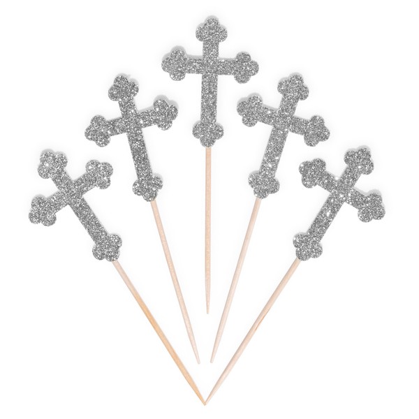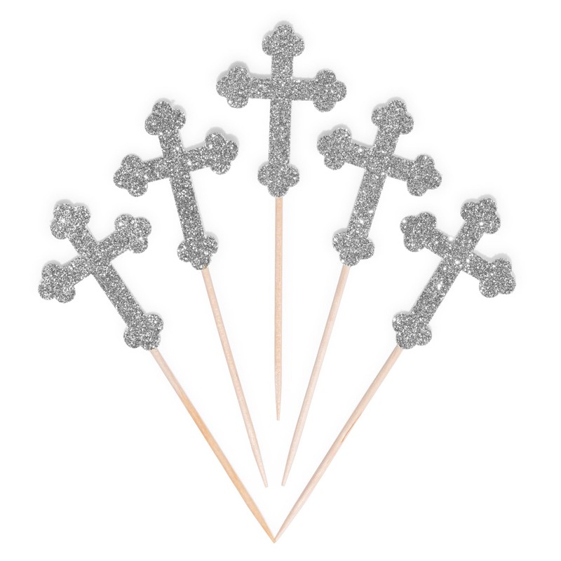 - Enhance Your Event with 12 Silver Glitter Christian Cross Toppers!