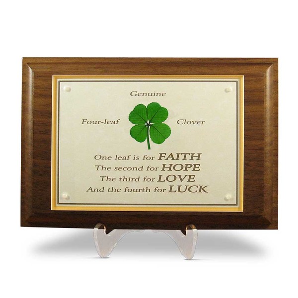 Clovers Online Walnut Plaque with a Genuine Four Leaf Clover