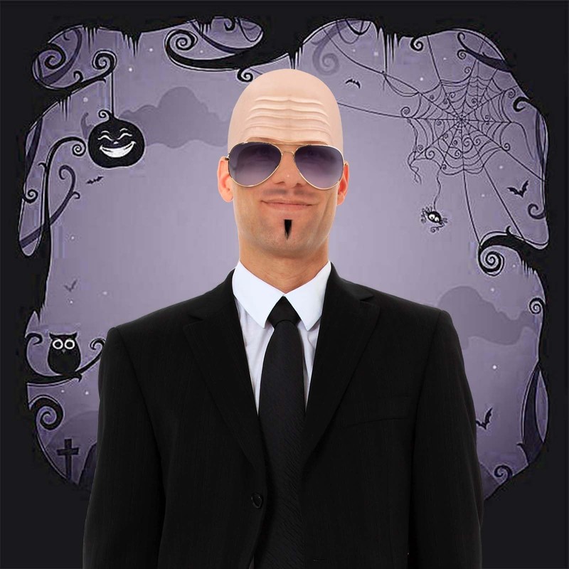 - 【Classic Hip Hop Style】The Halloween bald man accessory set authentically captures the vibrant style of a Latin American singer. The bald cap allows you to embody many different bald characters, and the chic black sunglasses add a touch of trendy flair. These fake mustaches also allow you to mix and match freely to portray different characters. Get ready to steal the spotlight at the Halloween party