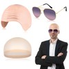 Clovilet 3 Pcs Bald Caps with Glasses for Adults Men Nylon Bald Head Wig Cap Can Be Cut for Halloween Party Dress Up (1)