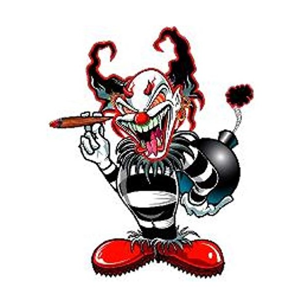 - CLOWN WITH BOMB STICKER HELMET STICKER BUMPER STICKER
