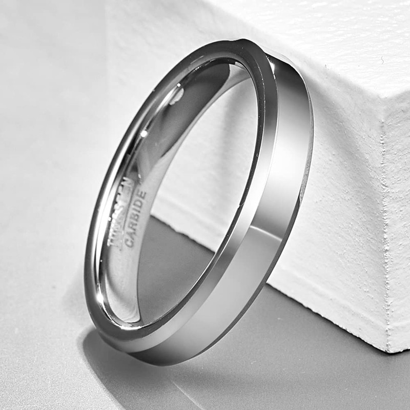 - Minimalist Design: 4mm/6mm/10mm wide silver tungsten ring for men, featuring beveled edges and high polished finish.