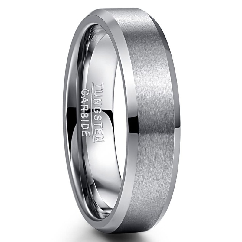 6mm silver mens tungsten carbide wedding bands with matte finish surface and beveled edges, comfortable to wear, simple and sleek.