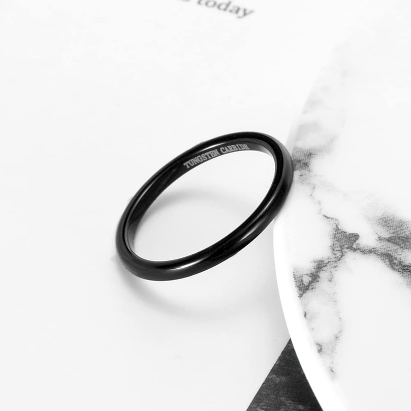 - ☞Minimalist Design: 2mm black/blue/silver men's & women's tungsten wedding band plain stacking rings with high polished finish, provide you with a sleek, modern, stylish feeling and comfortable wearing experience.