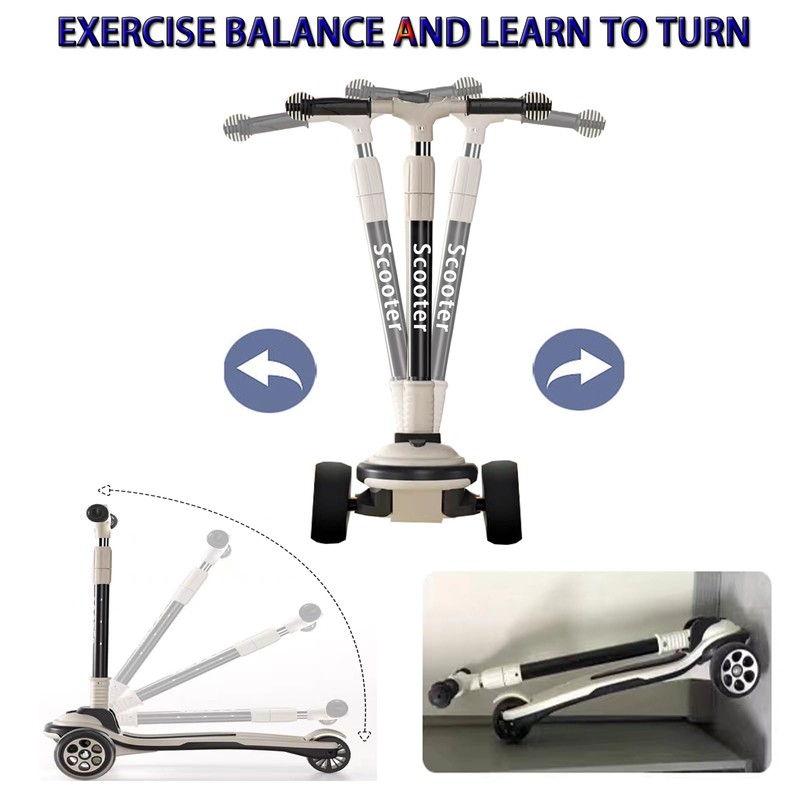 - 【Easy to install,Fold and Carry】Just insert the T-bar (handlebar) into the deck, adjust the height of the scooter according to the height of the children, and use it after tightening!