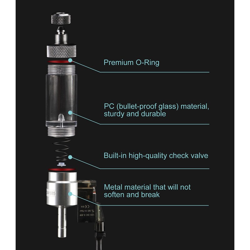 Clscea CO2 Bubble Counter with Solenoid Valve and Check Valve for CO2 Generator Regulator Planted Aquarium Quick-Plug Connection