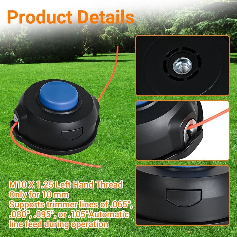 - 【Easy Installation】The T35 trimmer head features a quick and straightforward spool reload system. Designed with M10 x 1.25 LHF threading, ensuring compatibility with most straight-shaft trimmers.