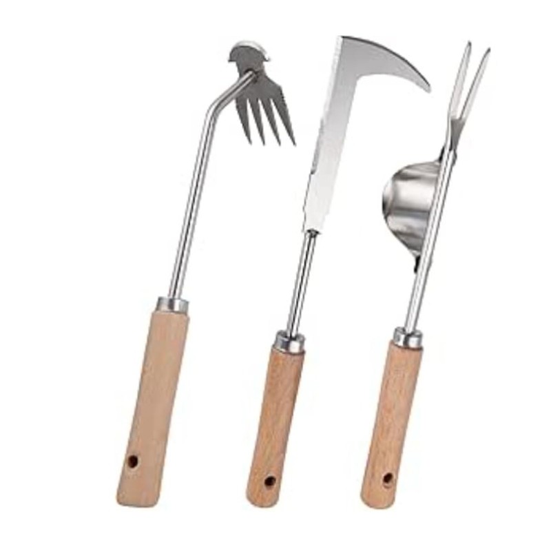 - High quality materials: Made of stainless steel and wooden handle, sturdy and durable, sharp and easy to weed, comfortable grip