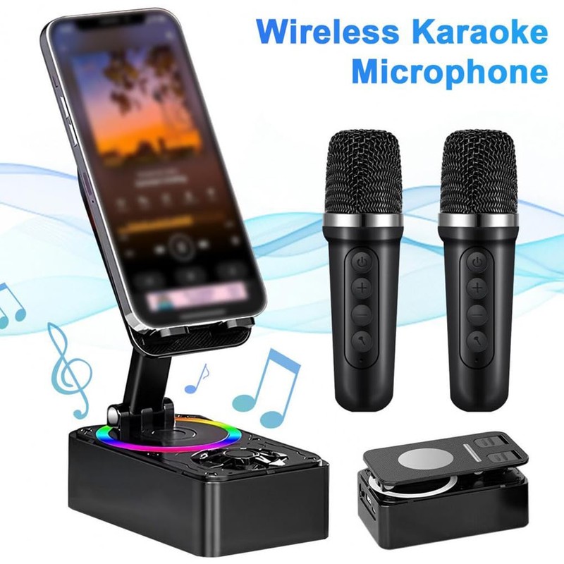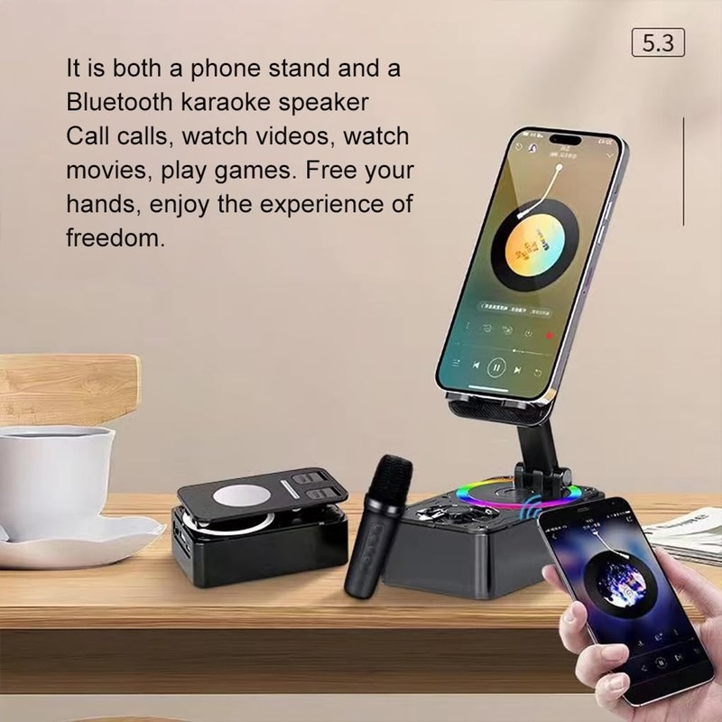 CLSSLVVBN Adjustable Phone Stand with Bluetooth Speaker Hands-Free Entertainment Serves As Both Phone Stand and Karaokes Speaker, Dual Microphones