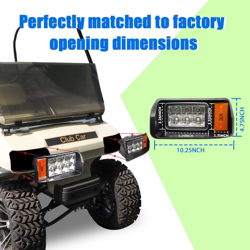 - 【Applicable Model】Golf Cart LED Light Kit Fit for 1993-UP Club Car DS Gas & Electric Golf Cart.(Fits stock opening size,will not fit modified golf carts