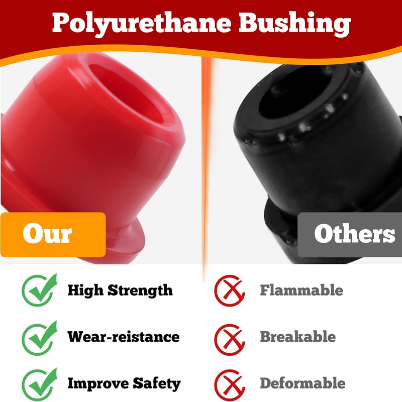 - Great Functionality: Soft urethane bushings prevent metal contact between the spring and hook and loop, reducing metal breakage. There is no noise or discomfort when driving with this bushing kit. It can provide you with a smooth and long-lasting driving experience