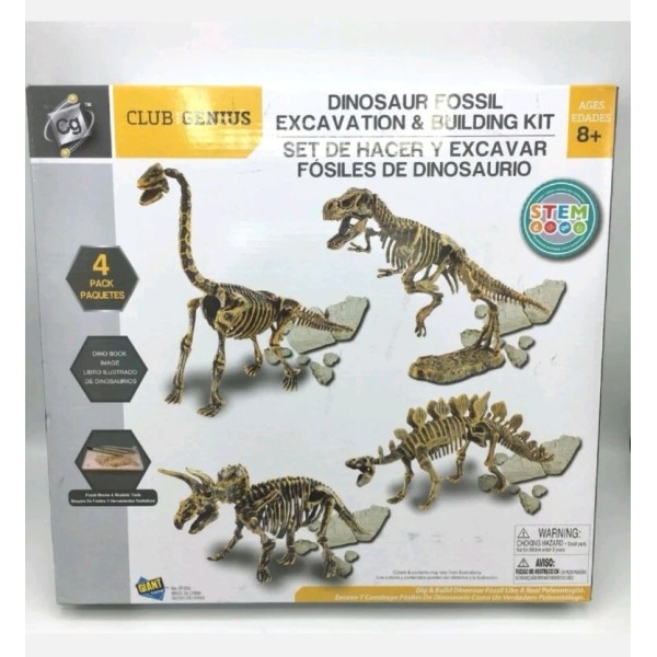 Club Genius Dinosaur Fossil Excavation & Building Kit 4 Pack.