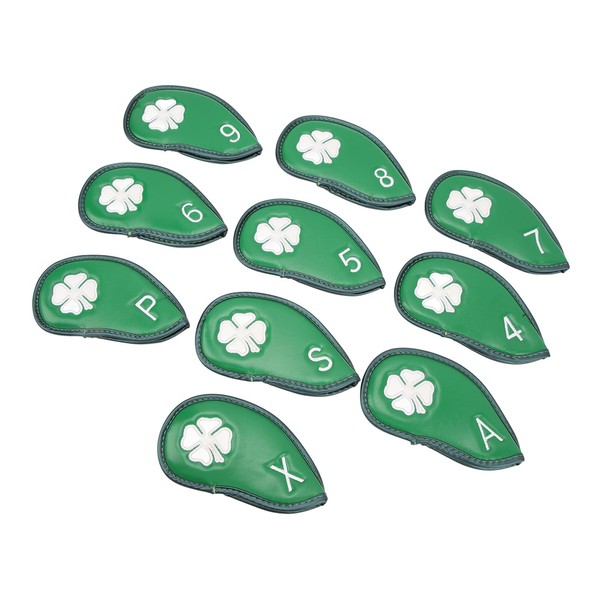 Club Head Covers, 10 PCS Iron Covers Four Leaf Clover Pattern PU Waterproof Delicate Iron Covers Set for Most Clubs (Green)