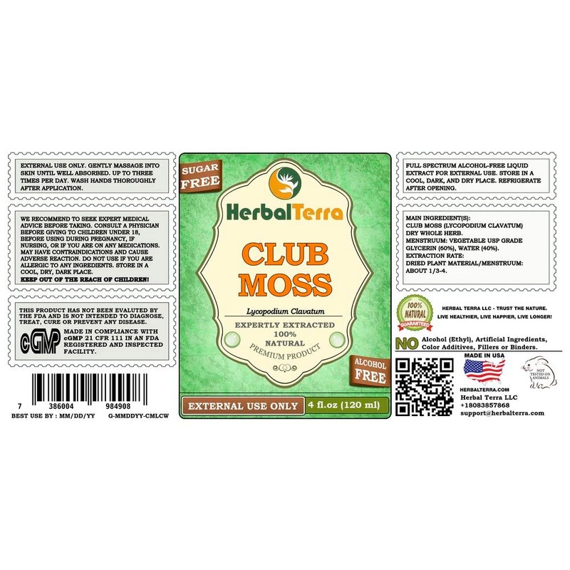 Club Moss (Lycopodium Clavatum) Glycerite, Dried Whole Herb Alcohol-FREE Liquid Extract (Brand name: HerbalTerra, Proudly made in USA) 4x4 fl.oz (4x120 ml)
