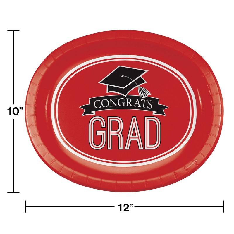 Club Pack of 96 Red and Black School Spirit Oval Platters Disposable Plates 12"