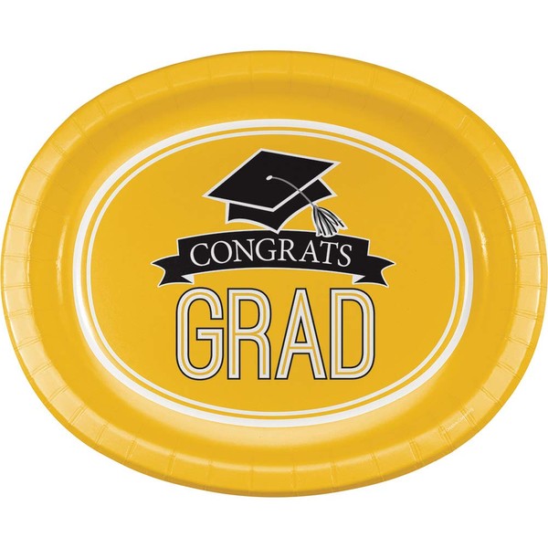 Club Pack of 96 Yellow and Black School Spirit Oval Platters Disposable Plates 12"