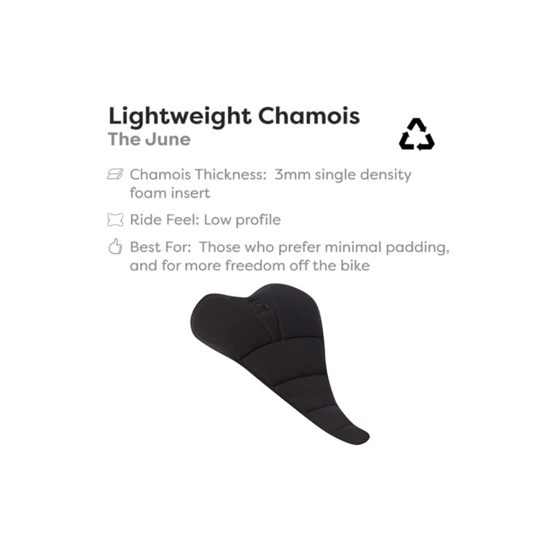 - The June Chamois has changed the women's chamois game with its limitless versatility. From pub crawling with your gal crew, to indoor spin class, to riding with friends in the techy trails of Hurricane Utah where you're standing more than sitting, the June is a perfect chamois to have in your quiver.