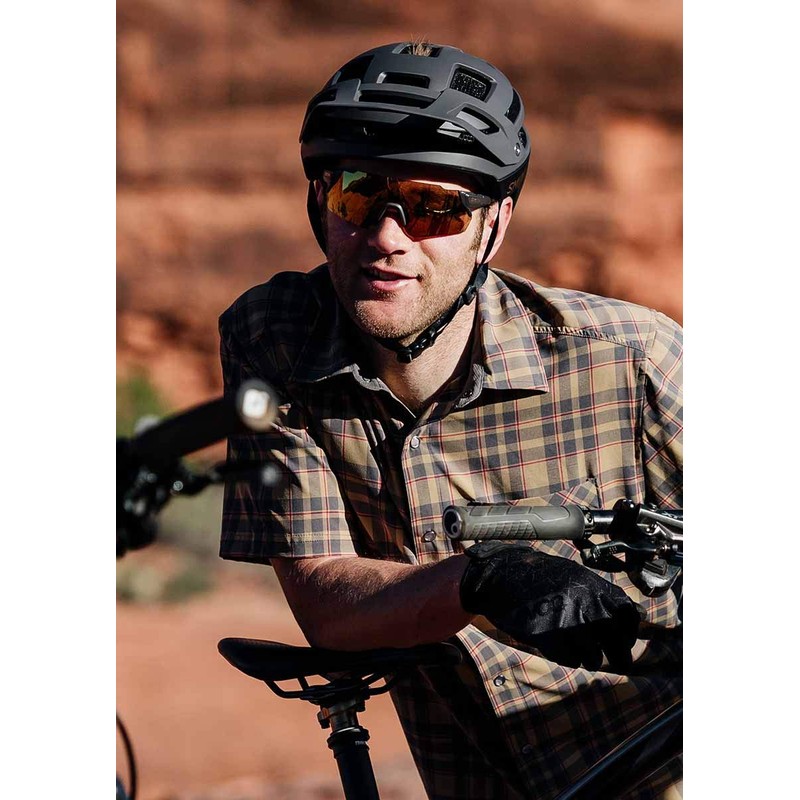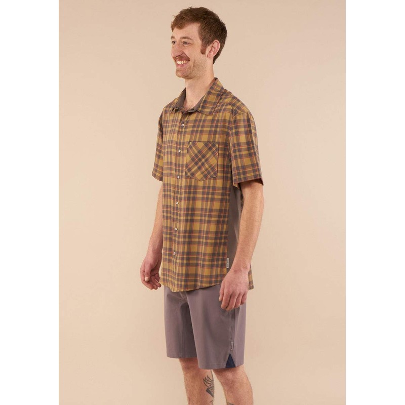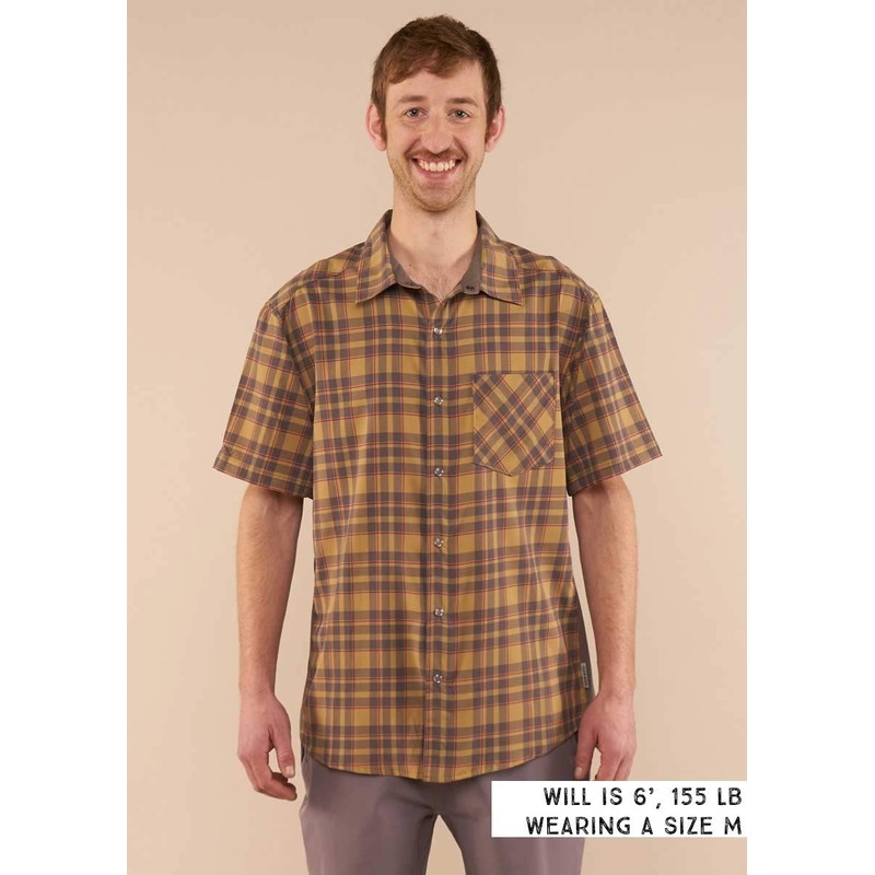 Club Ride Detour Men's Short Sleeve Snap Down Top, Khaki/Cayenne, X-Large
