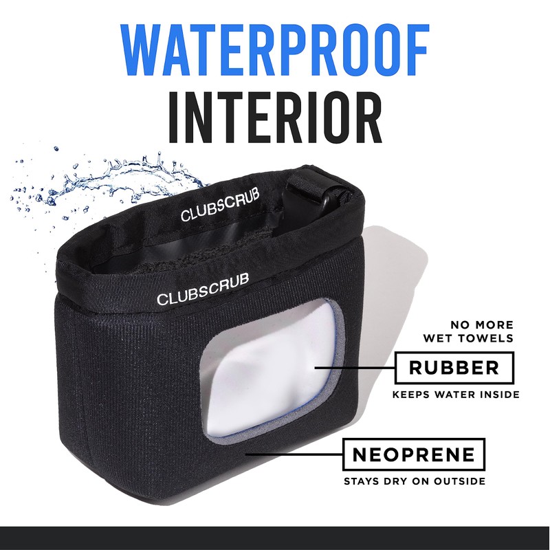 - WATERPROOF liner gives you effective clean without the mess. Add a half cup of water to the club scrub before your round and enjoy a clean club with every stroke.