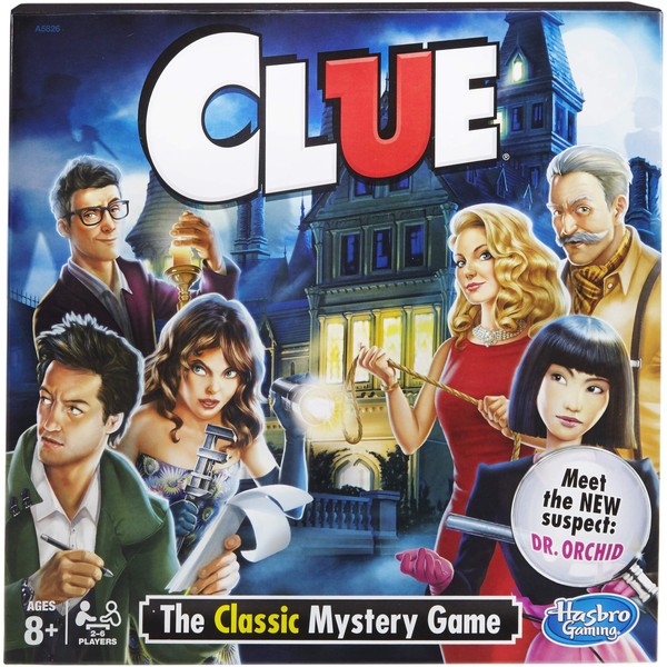 One murder… 6 suspects. In this suspenseful Clue game, players have to find out who's responsible for murdering Mr. Boddy of Tudor Mansion in his own home. Get the scoop on the mansion's rooms, weapons and guests and start detecting! Was it Plum with the wrench in the library? Or Green with the candlestick in the study? Eliminate information throughout the game in this classic whodunit. The player who correctly accuses Who, What, and Where wins! Hasbro Gaming and all related terms are trademarks of Hasbro.