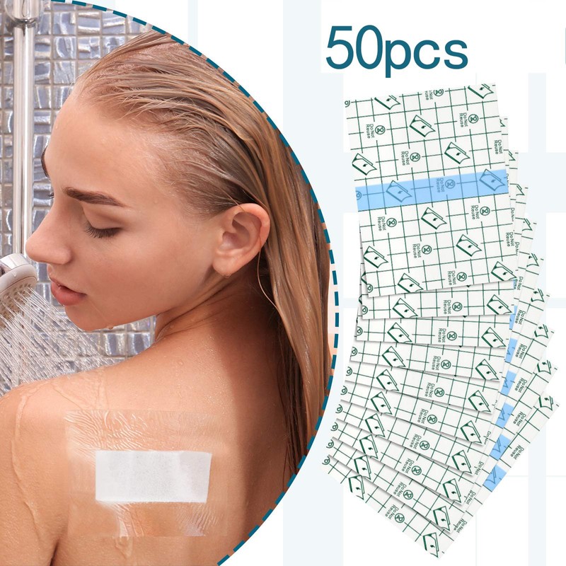 Cluoling 防水フィルム 50枚(6cm×6cm) 防水ドレッシング 透明絆創膏 キズ防水フィルム キズに保護フィルム 防水フィルム 腹膜透析防水フィルム 入浴/水泳/水仕事/お風呂用
