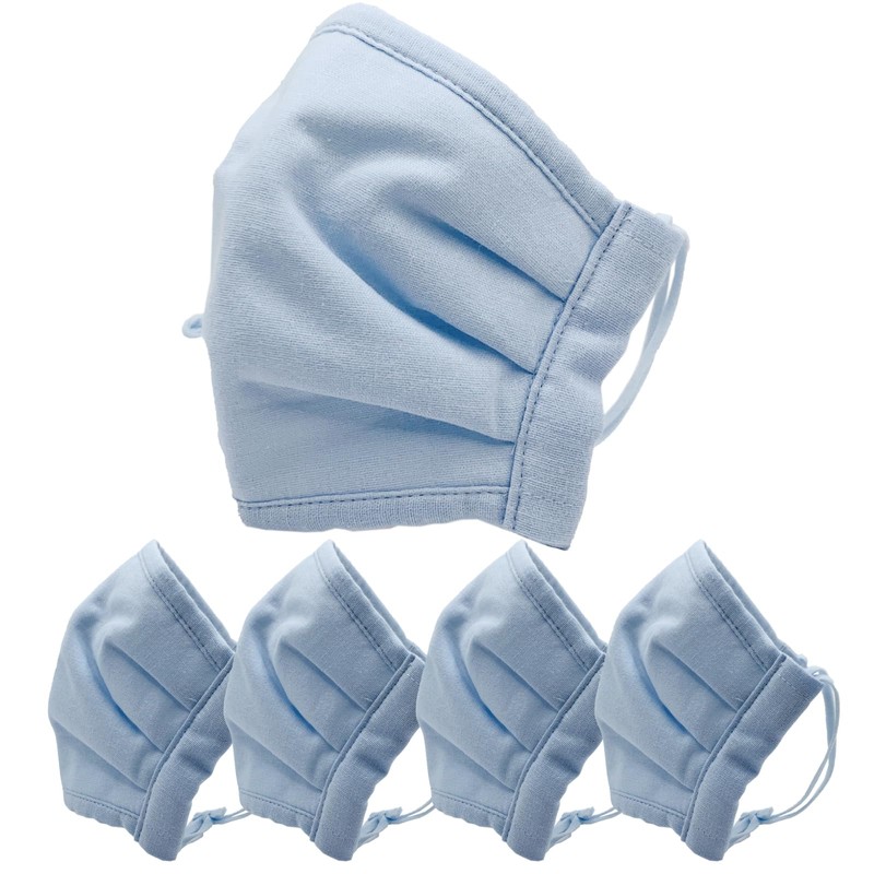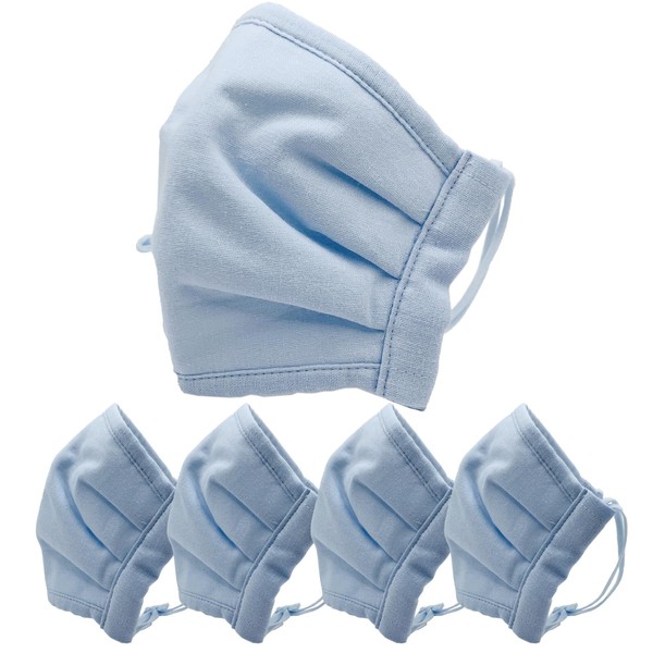 [cluster] 潔 立体布マスク 日本製 和晒ガーゼ使用 高機能不織布フィルター入り 花粉99.9%カット BFE93%以上 ノーズワイヤー付き 洗える 男女兼用 5枚セット 【ライトブルー】 ふつうサイズ