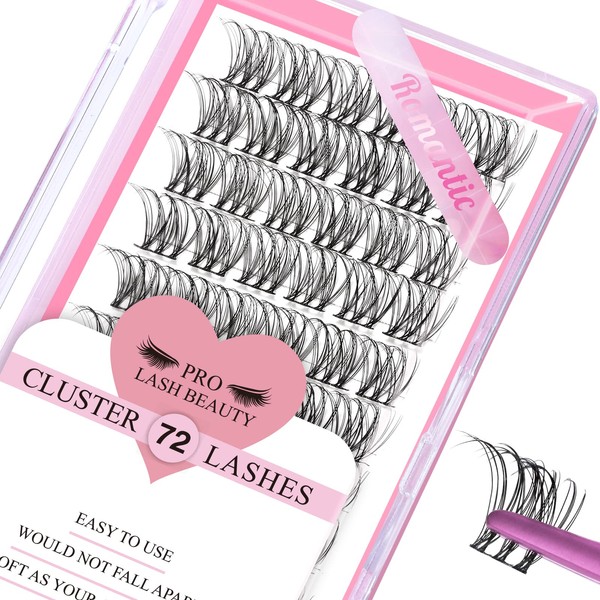Cluster Eyelashes, Pack of 72 Individual Eyelashes, Eyelash Clusters, DIY Eyelash Extensions, Super-Thin Band, Reusable, Soft & Comfortable (Romantic-D-12 mm)