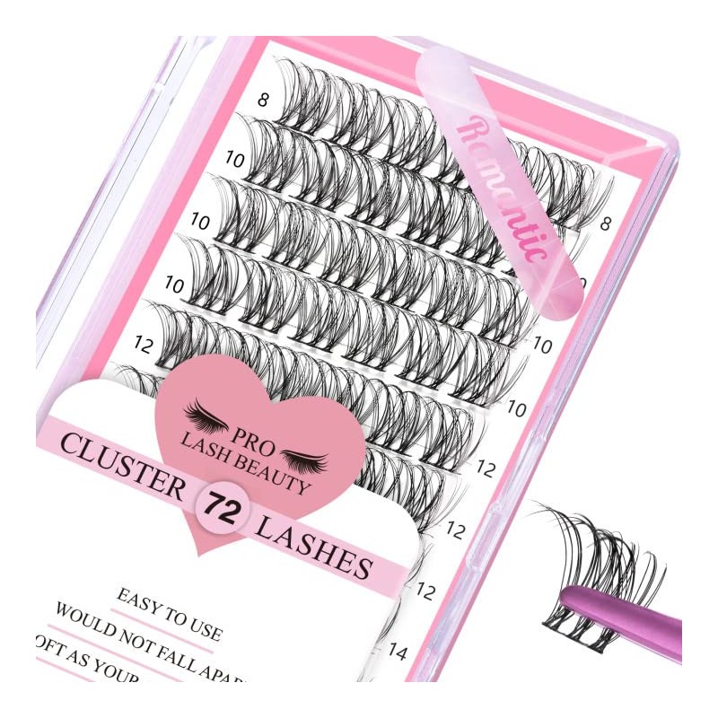- Pack of 72 individual eyelashes: The hottest cluster eyelashes on social media are now available. PRO LashBeauty offers 72 pieces in one box. Assorted lengths from 8 mm to 16 mm. You get more eyelashes for the same price and can also reuse them.