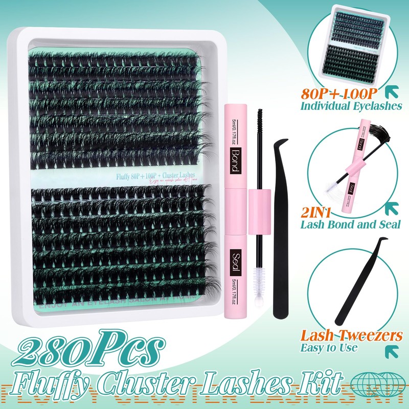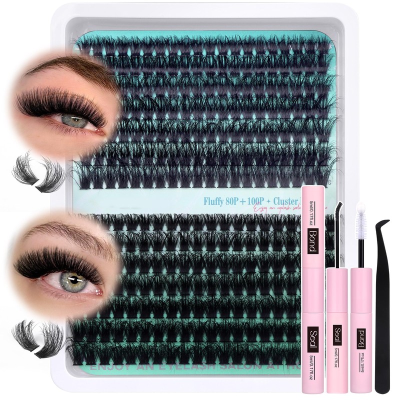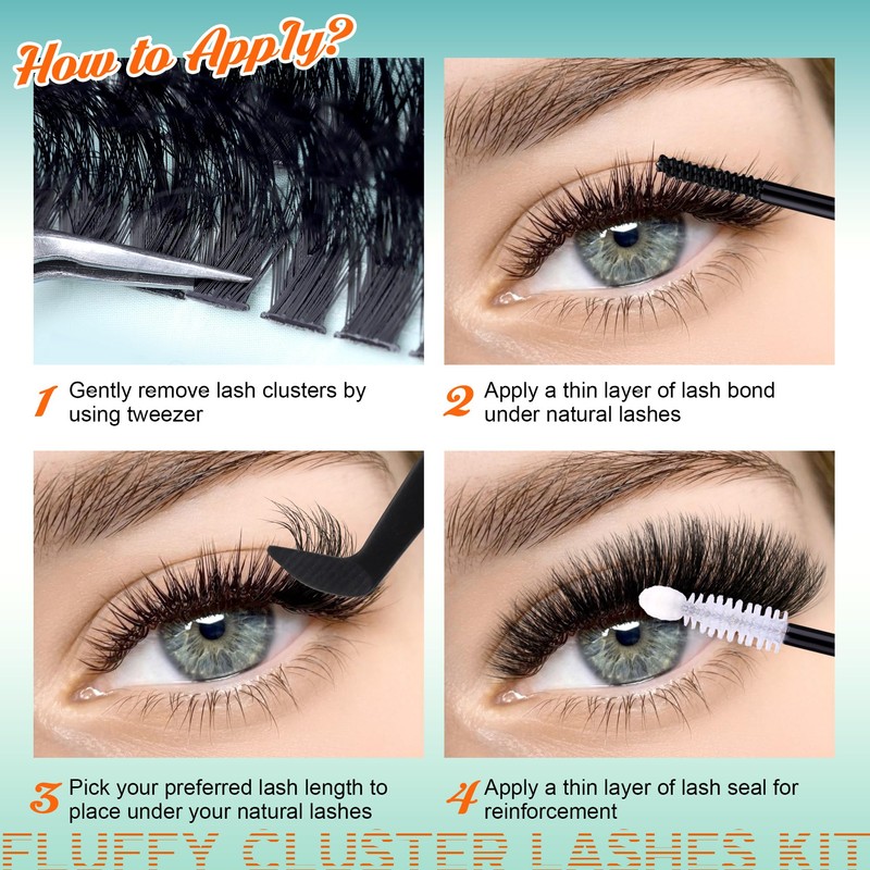- Lash Bond and Seal & Precision Tools: The kit includes a 2IN1 lash bond and seal glue for a strong, long-lasting hold. High-precision tweezers help place individual lash clusters easily and accurately. Following our user guide, you friends can wear the cluster lashes kit very easily.