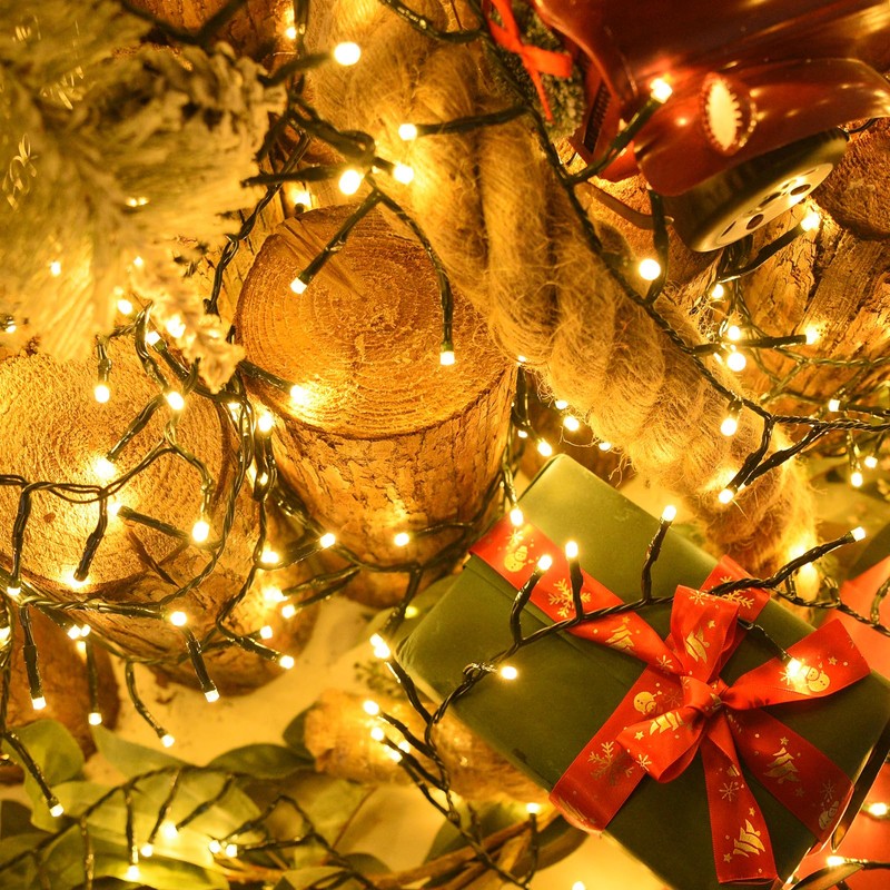 - 【FAIRY LIGHTS WITH REMOTE】Our christmas tree lights with remote offer a selection of 8 different lighting modes, Besides, the remote control features a memory function, automatically saving your last settings,eliminating the hassle of resetting when used next time.The dark green wire can be easily hung on your Christmas tree, seamlessly blending with your tree to create a cohesive appearance. Note:For initial remote control use, remove the transparent film from the bottom to activate it