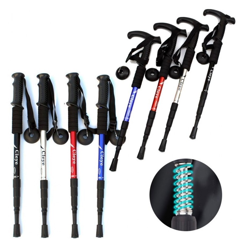 Cly Duralumin hiking stick straight T-shaped stick cane Easy portability 4-stage folding stick Cly 4Single magnetic stick (silver) 2ea
