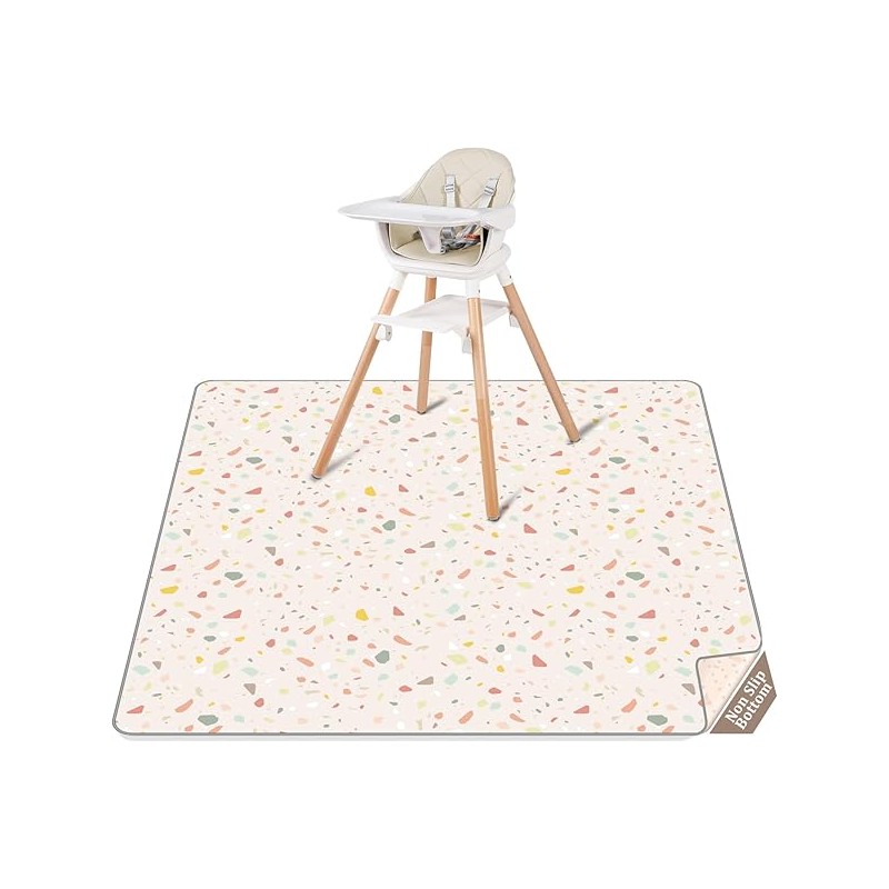 CLYMENE Splat Mat for Under High Chair | 51x51 Inch Anti-Slip Baby Splash Mat | Waterproof & Washable Spill Mat for Highchair Floor and Infant Play (Terrazzo Treasure)