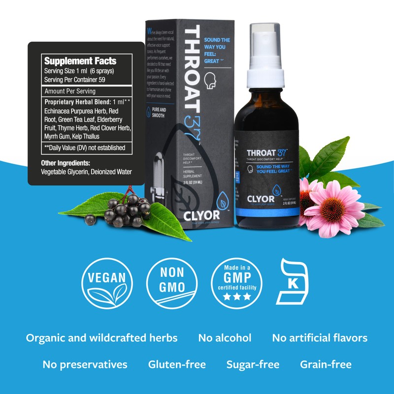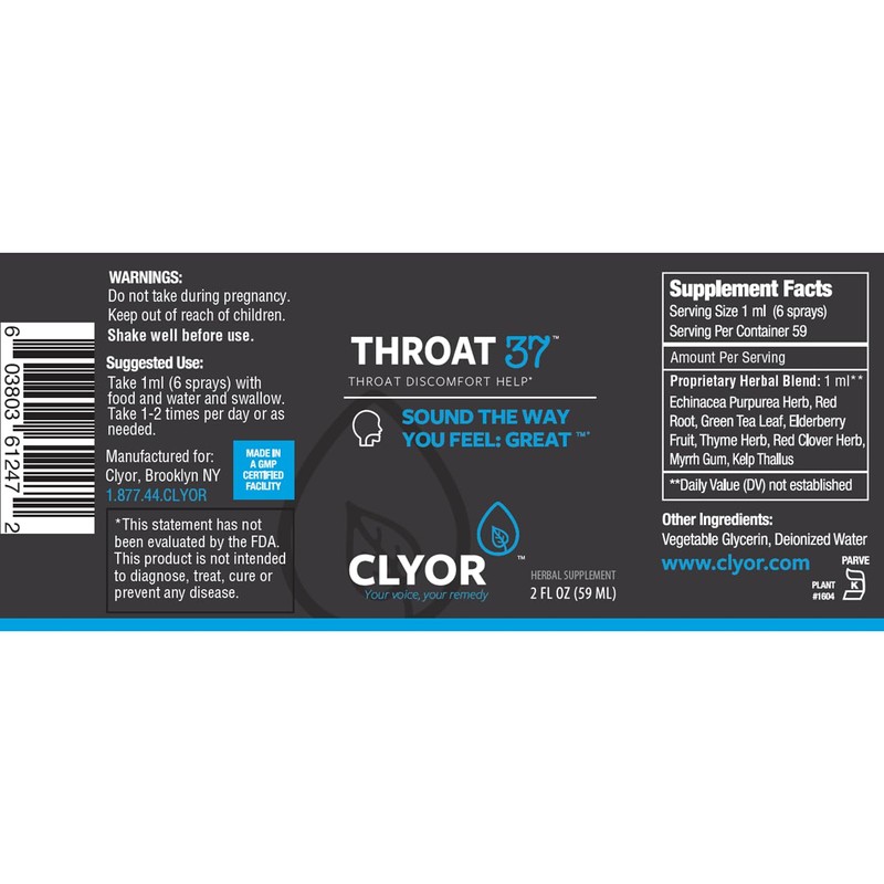 CLYOR THROAT37 – Natural Sore Throat Relief Spray – Natural Herbal Supplement