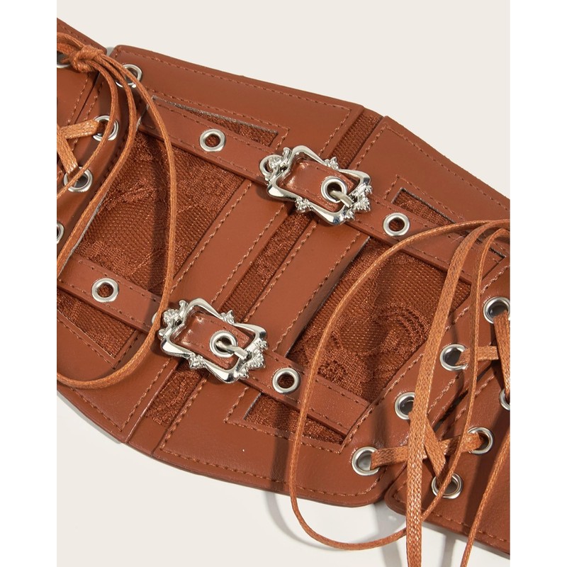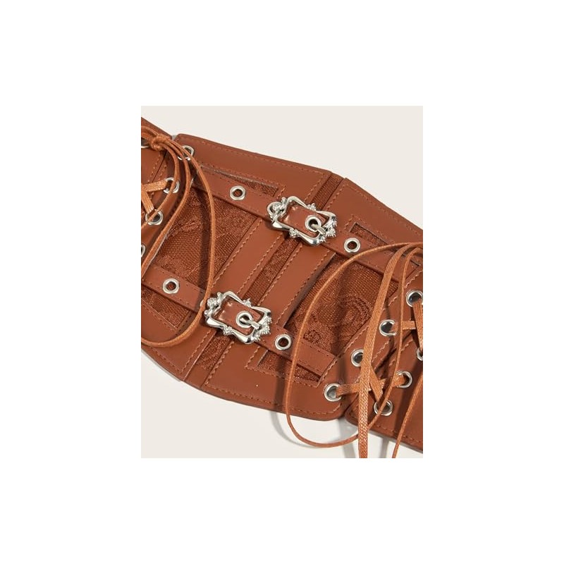 Clyralisa Women's Elasitic Corset Belt Sides Lace-up Underbust Wide Costume Belts for Women Brown XS