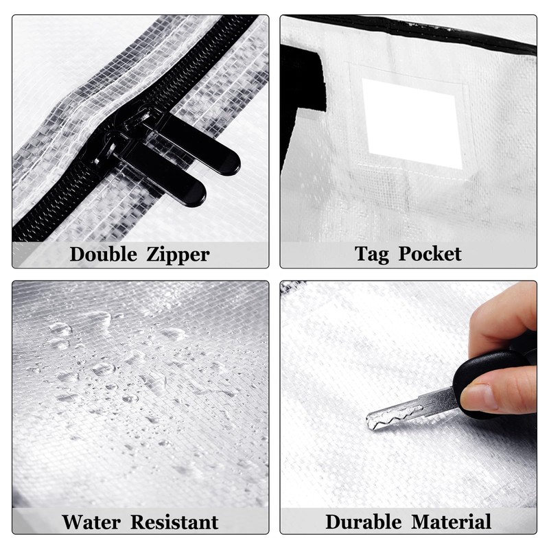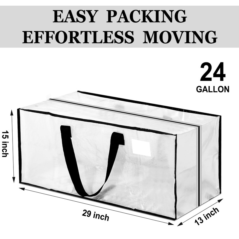 - Robust Material: experience quality with our PE made clear moving bags for college; Engineered to handle the heavy loads, the material is strong, reliable, and known to resist wear and tear; Moreover, it is waterproof to keep your items efficiently away from dampness and dust, The clear design allows you to see exactly what's inside, making packing, moving, and storage a breeze