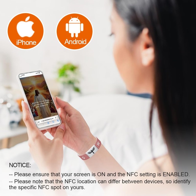 --- Crafted for both men and women as well as teens this elastic wristband features the innovative NFC technology that allows you to access uplifting Bible verses with a simple tap on your smartphone.