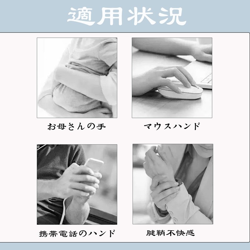 【使用範囲の全アップグレード】1.手首/親指の過度な使用による腱鞘炎/親指の痛み/軟組織損傷などの問題の緩和と予防に役立ち、回復に役立つ。2.長時間の仕事、運動、家事、育児、執筆、絵画、ピアノ練習、労働、携帯電話/パソコンを使用する人に適しています。