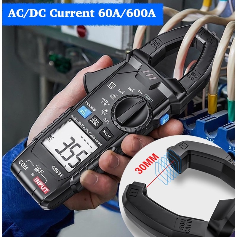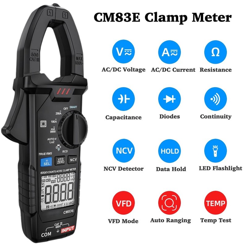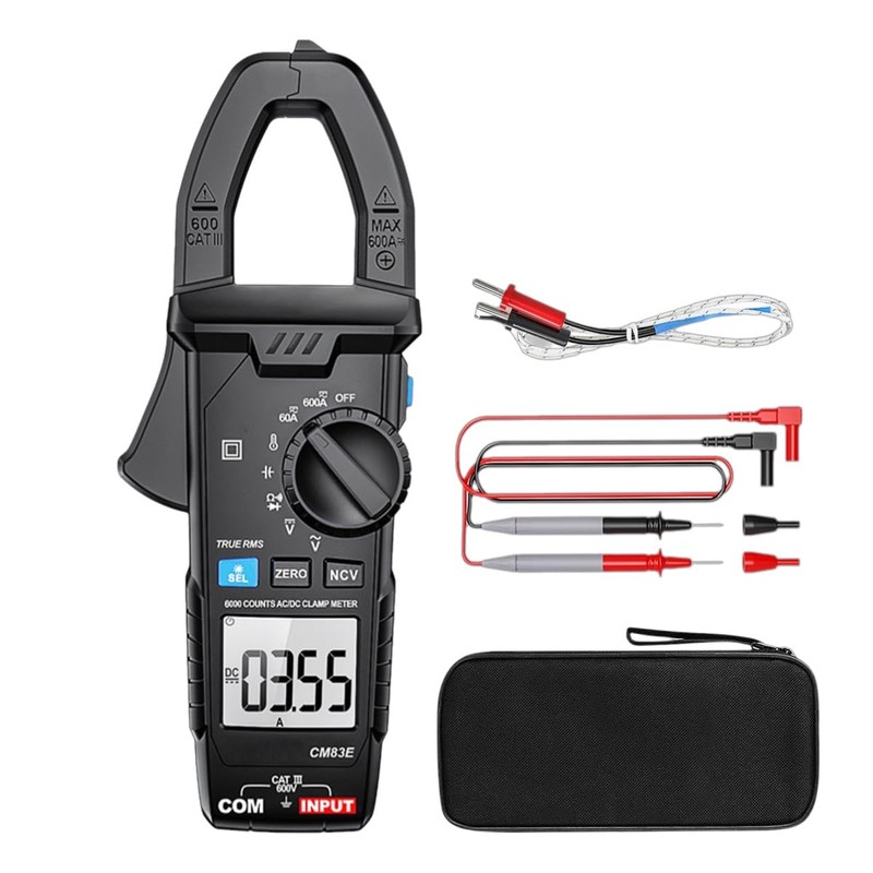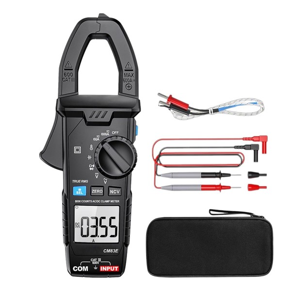 CM83E Clamp Meter, Digital Voltmeter Multimeter, NCV True RMS AC DC Amp Voltage Meter, Auto Ranging 6000 Counts Temp Resistance Capacitance Diodes Continuity Tester