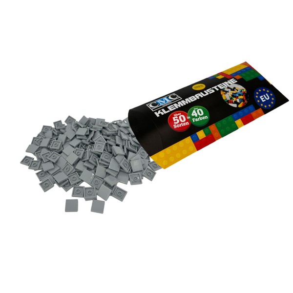 CMC imports 250 x Clamping Blocks Tiles Building Blocks 2 x 2 Nubs Compatible Free Choice of Colours (411 - Light Grey)
