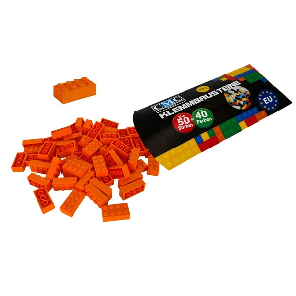 CMC imports 50 Clamping Blocks, Building Blocks, 2 x 4 Nubs, Compatible Bricks, 8 Knobs, Free Selection, 34 Colours (150 - Light Orange)