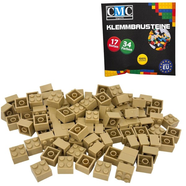CMC imports 50 Clamping Blocks, Building Blocks, Basic Building Blocks, 2 x 2 Nubs, Compatible Bricks, 34 Different Colours (094 - Beige)