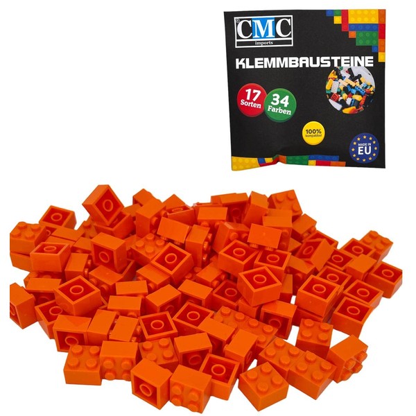 CMC imports 50 Clamping Blocks, Building Blocks, Basic Building Blocks, 2 x 2 Nubs, Compatible Bricks, 34 Different Colours (150 - Light Orange)