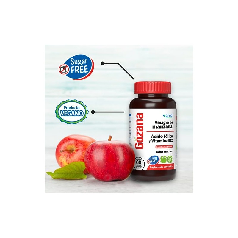 CMD PRODUCTOS NATURALES - CMD - GOZANA - Gomitas de vinagre de manzana, Ácido fólico y Vitamina B12 - Suplemento Alimenticio Sin Azúcar Sabor Manzana - 1 Frasco con 60 gomitas (INDIVIDUAL). ⭐ Calidad premium certificada con excelentes reseñas. Tecnología avanzada y rendimiento superior. 🔥 Alta demanda - Stock limitado. Ideal para quienes buscan lo mejor en calidad y estilo. Producto auténtico con satisfacción total asegurada. ¡No te quedes sin el tuyo y aprovecha esta oportunidad única!