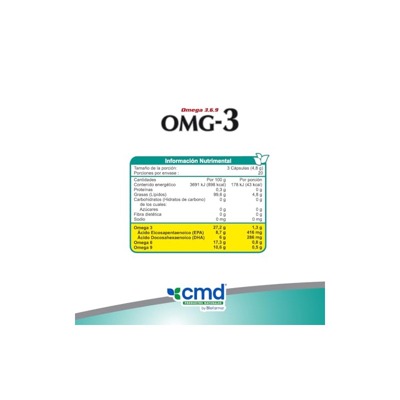 CMD - OMG-3 - Con Aceite de Pescado, Oliva, Linaza y Crtamo - Omega 3, 6 y 9 - Suplemento Alimenticio - 2 Frascos de 60 Cpsulas cu